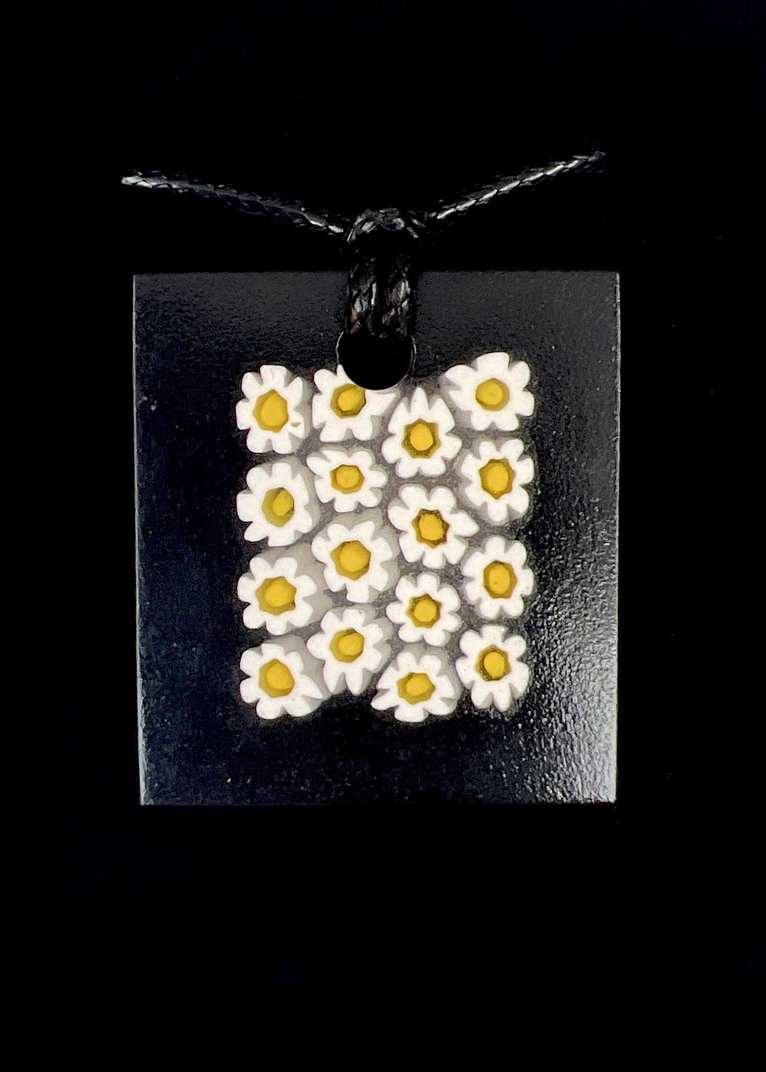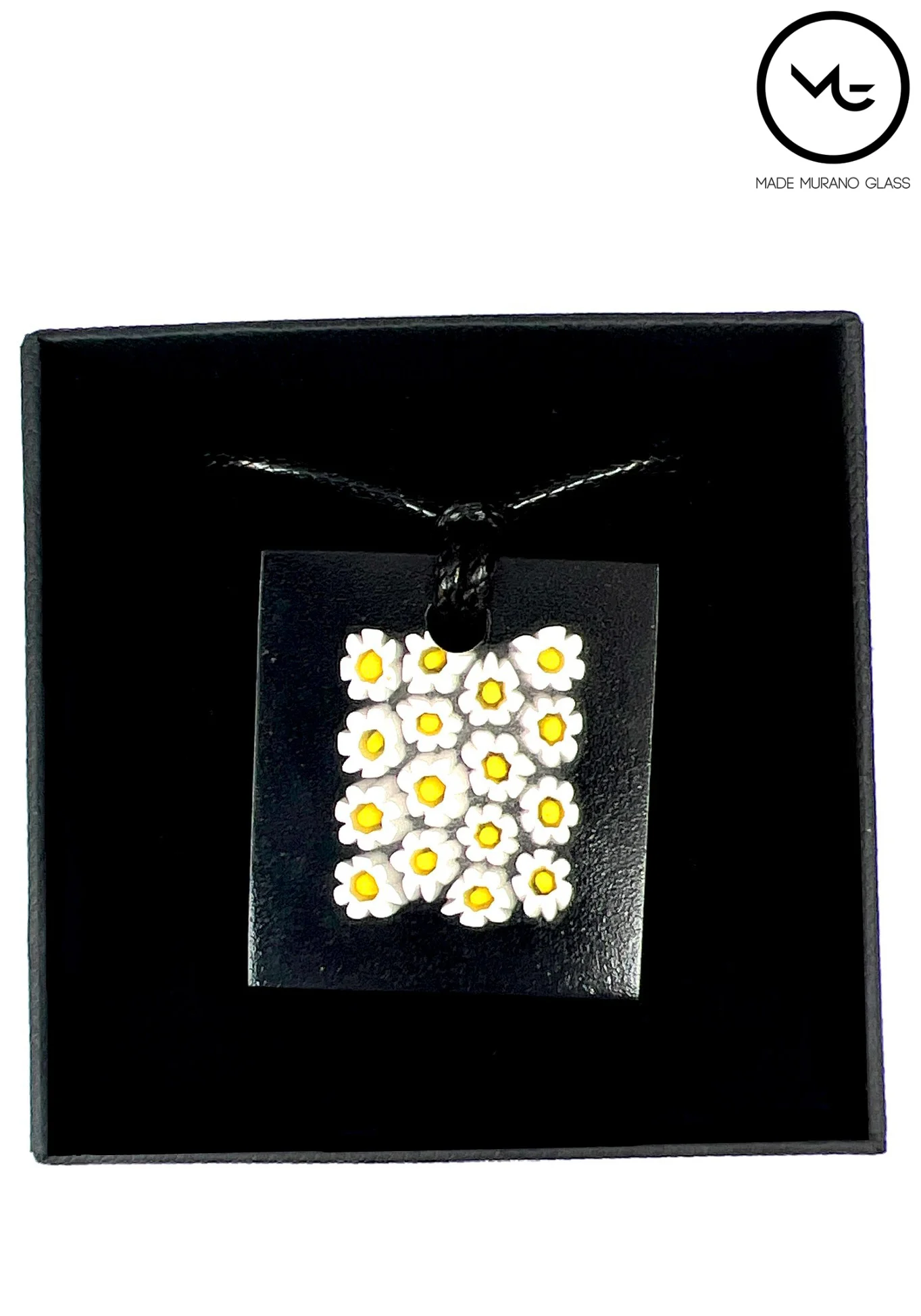 Black pendant in Murano glass with yellow and white Murrina millefiori.