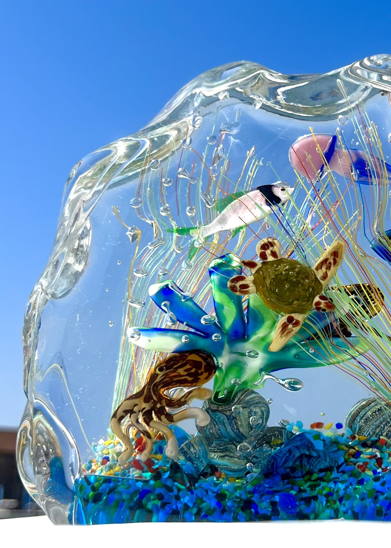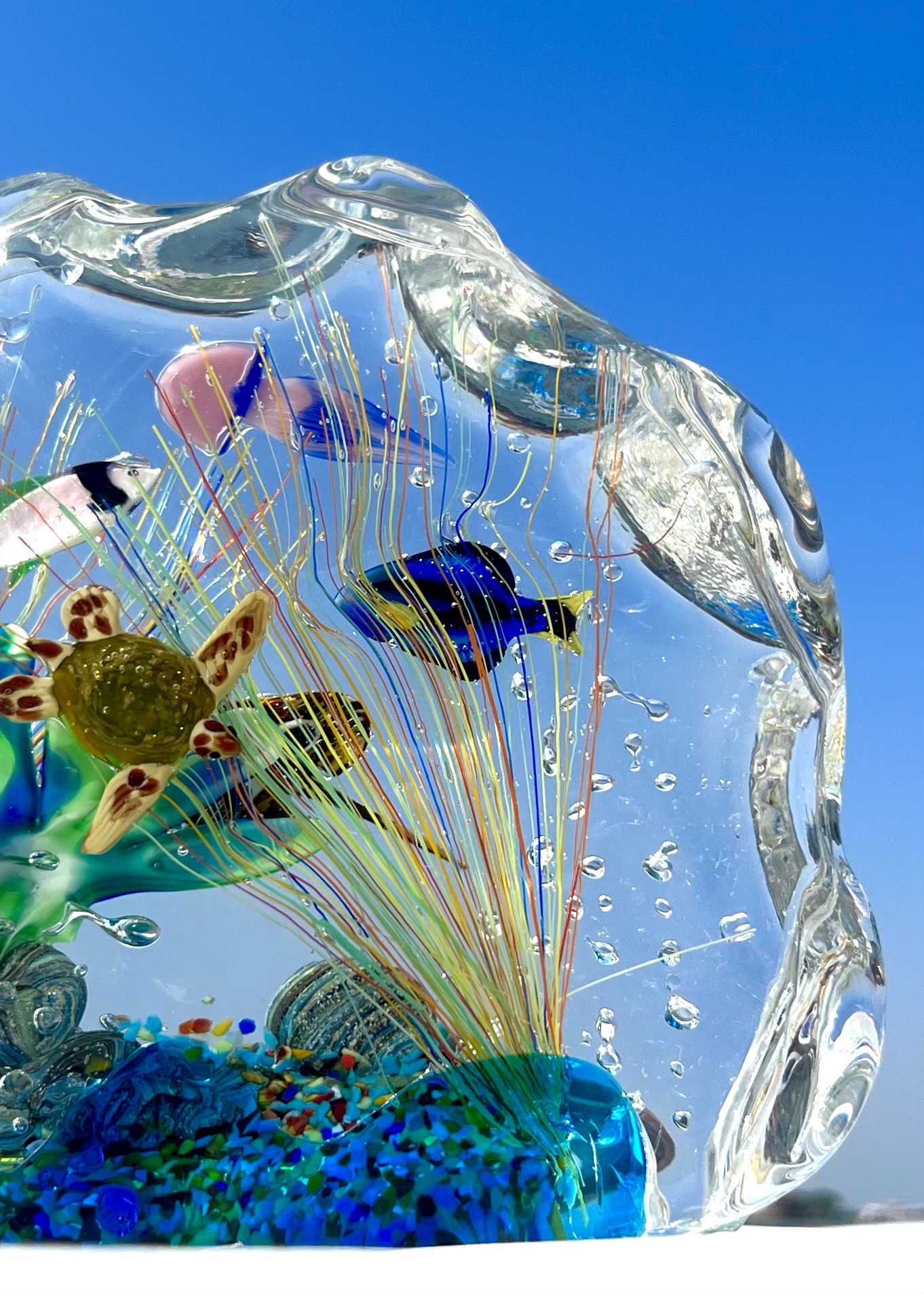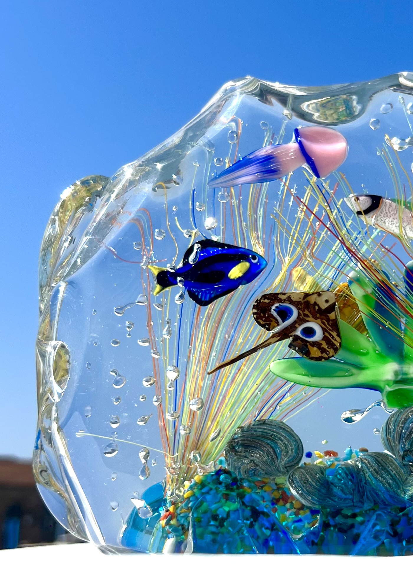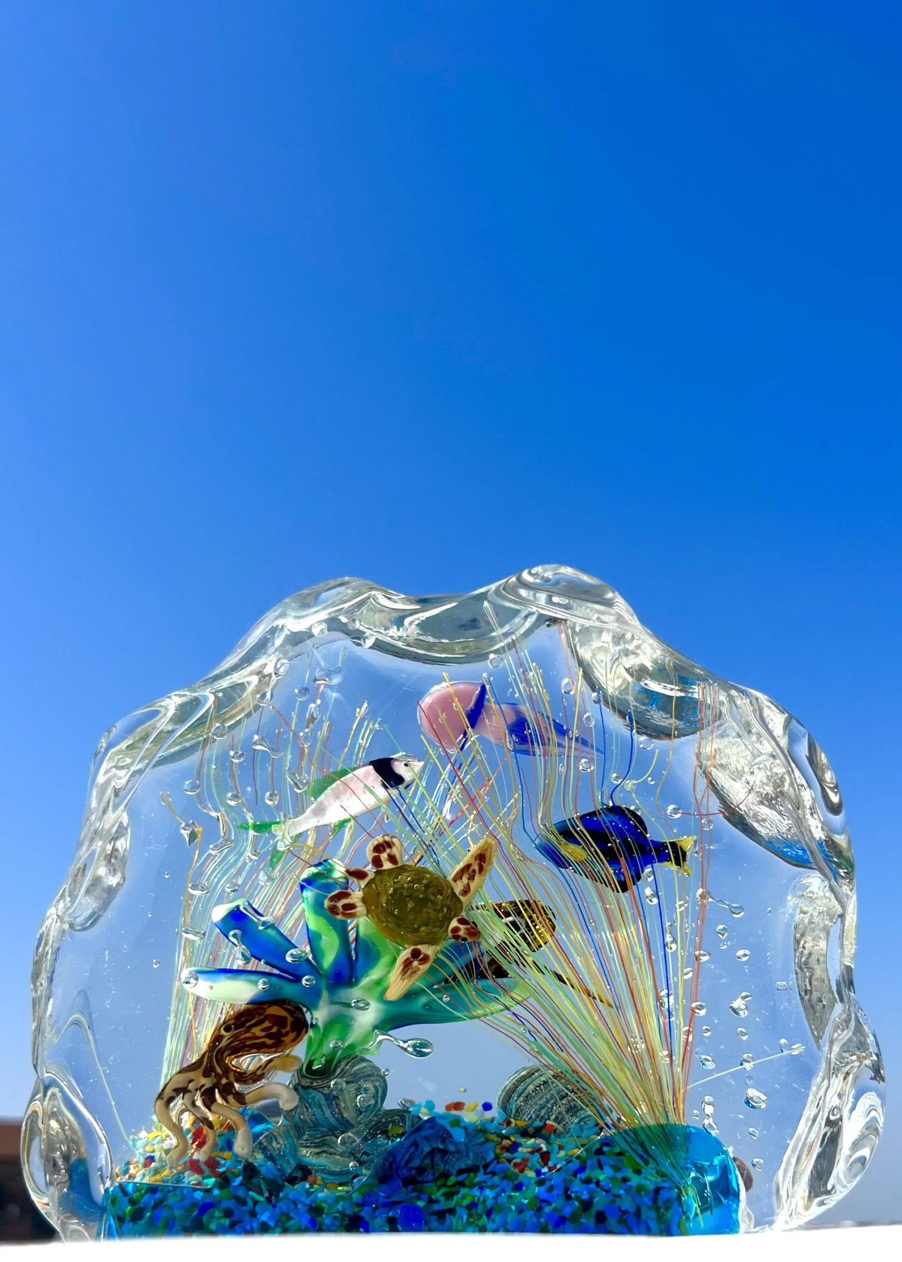 Half-moon aquarium sculpture in Murano glass.