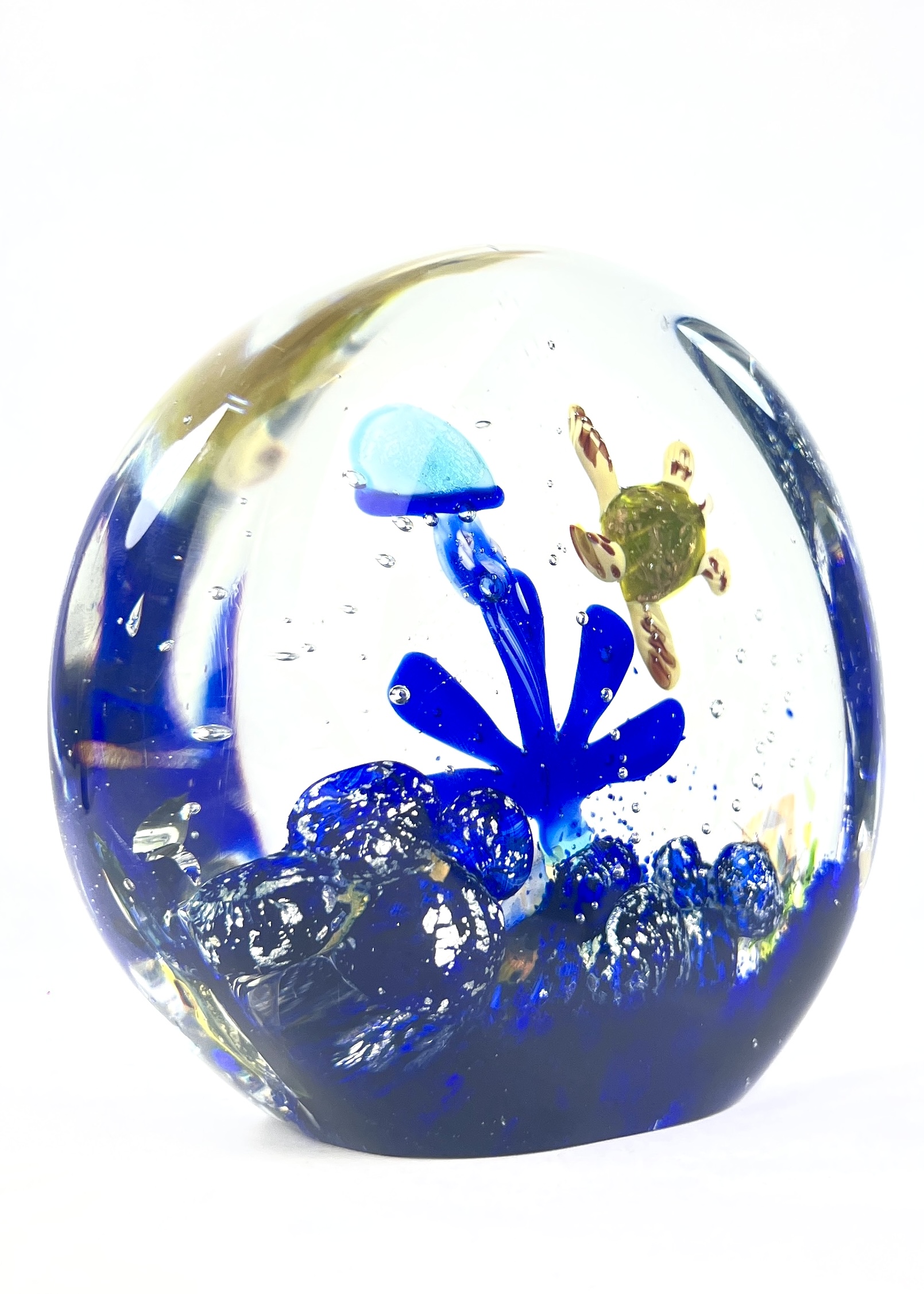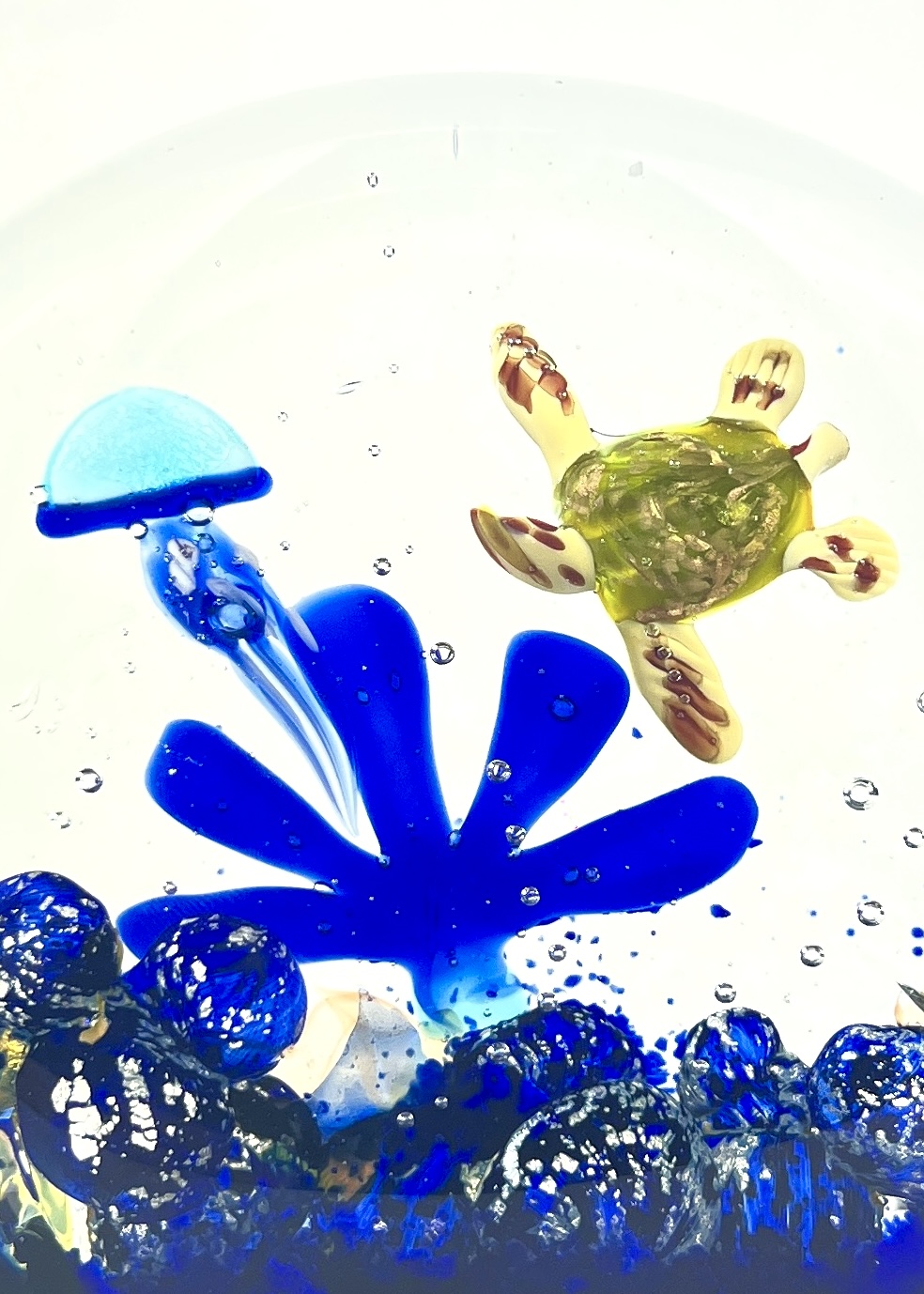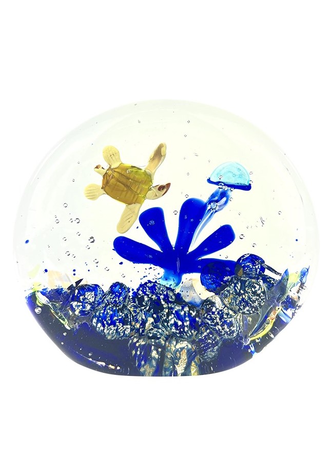 The sculpture contains 1 sea turtle, 1 jellyfish, 1 sea anemone, 1 cliff and various marine decorations.