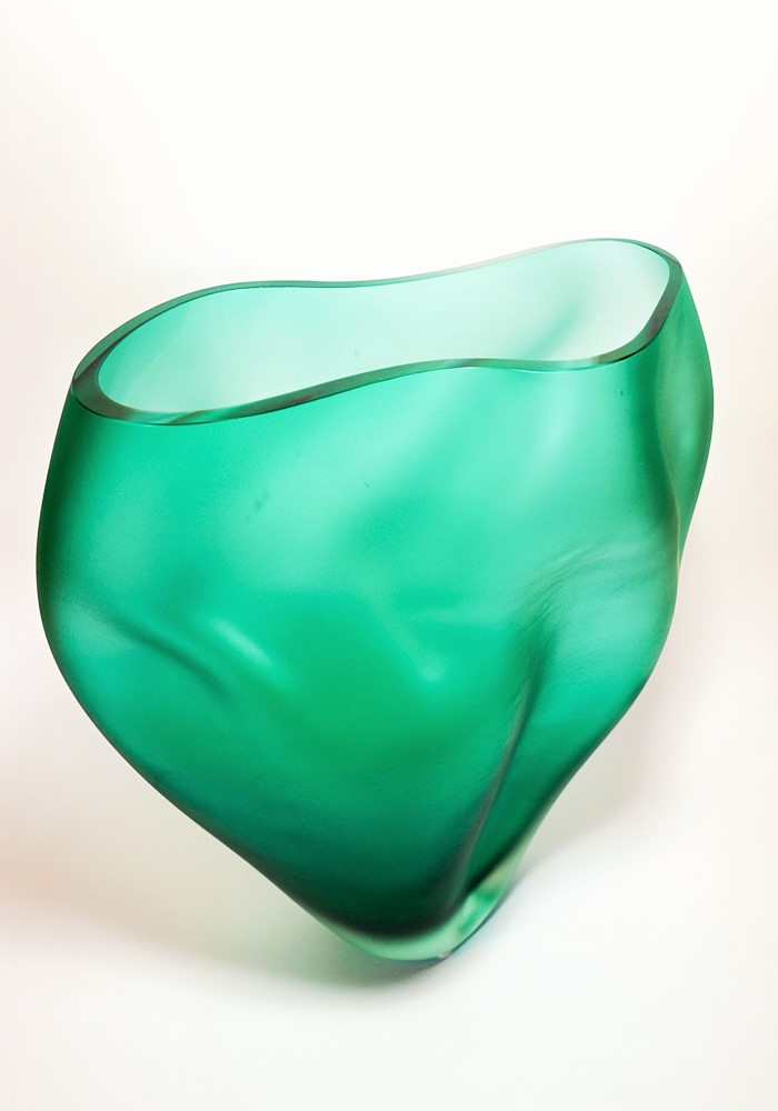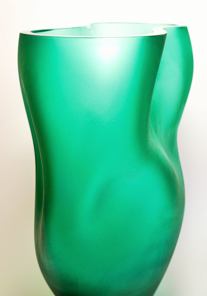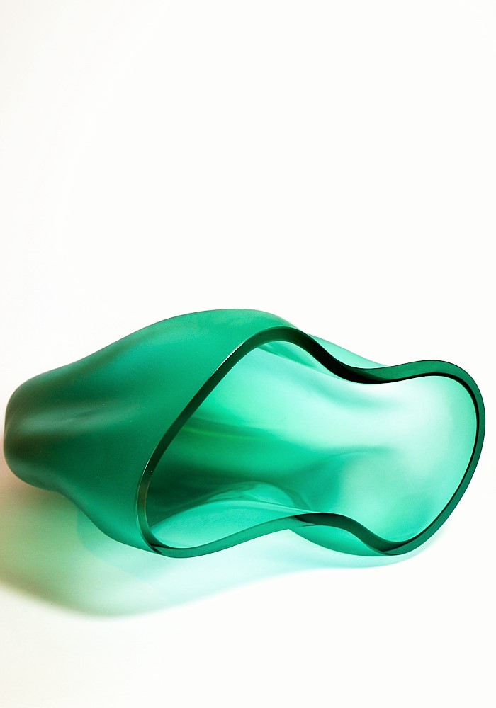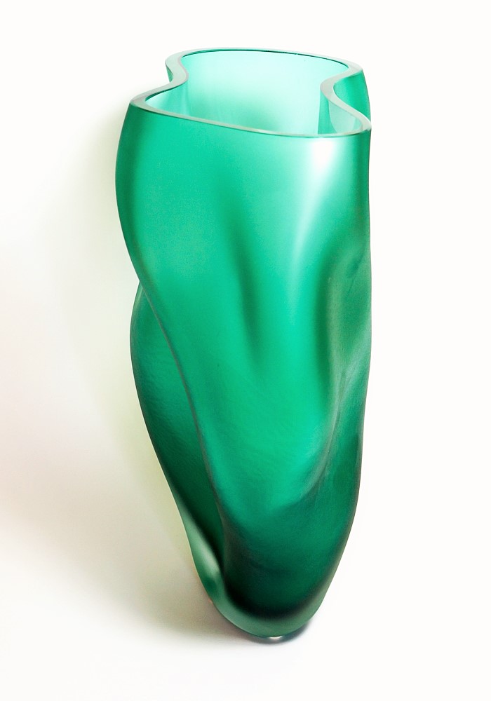 Exclusive design venetian blown glass vase, green coloured with an unique wavy shape .