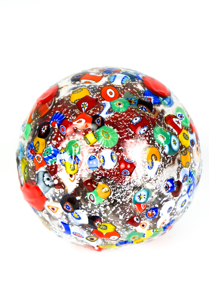 The placement of the murrina Millefiori is carried out with great care and precision, the pieces of glass (murrina) being placed one by one in a plate and then melted together with the crystal forming an intriguing mosaic.