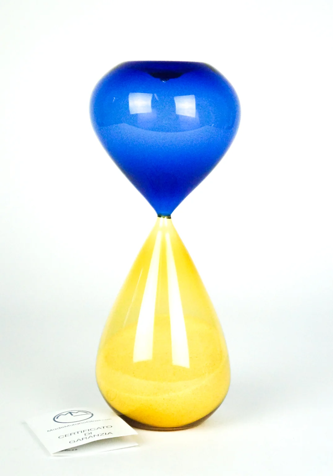 Murano blown glass hourglass made entirely by hand with the “Incalmo” technique.